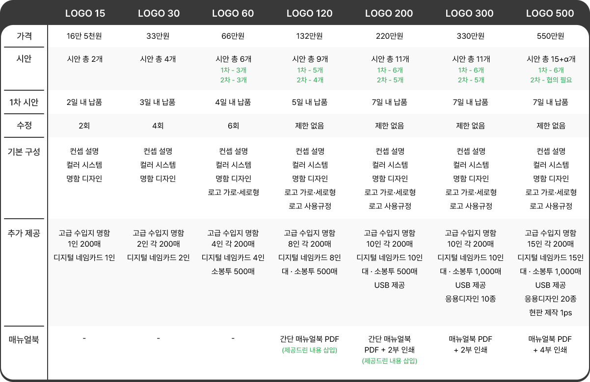 · 시안 납품 일자는 영업일 기준입니다.